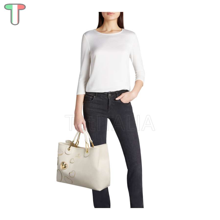 Collezione 2025 FW.  Produttore: Braccialini.  Linea: Beth.  Funzionalità: borsa a mano.  Materiale: Polisynt.  Colore: beige.  Manico: doppio con tracolla removibile e regolabile.  Dimensioni: 37x27x15 cm.  Altezza dello manico: 12 cm.  Peso: 0.86 kg.