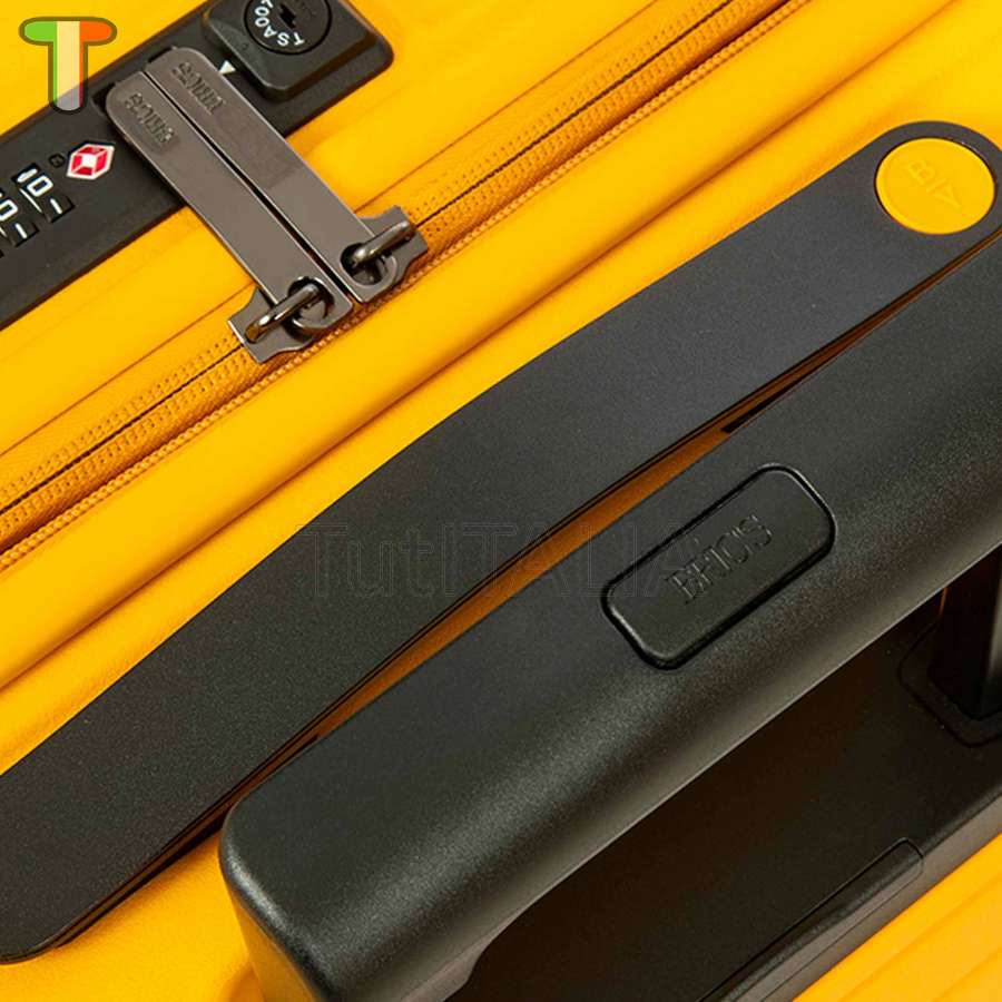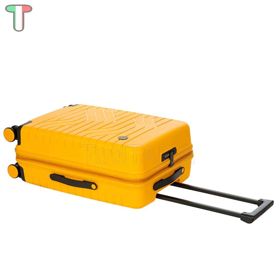 Produttore: Bric's.  Funzionalità: valigia - trolley rigido espandibile da cabina della collezione Ulisse B|Y Bric's. Il guscio esterno dal design urban, l'attacco USB e le ruote incassate lo rendono un trolley moderno e perfetto i tuoi viaggi brevi. ESTERNO: guscio realizzato in polipropilene, per assicurare la massima leggerezza, flessibilità e resistenza. Chiusura lampo con serratura TSA a combinazione integrata nel guscio. Zip per ampliare la profondità del trolley di 4 cm. MANIGLIA: comoda e funzionale maniglia di traino con tubi in alluminio, con tre posizioni di stop intermedio attivabili con un bottone a pressione. La maniglia superiore e quella laterale sono piatte ed ergonomiche. INTERNO: interno foderato diviso in due scomparti: fodera con zip e tasca piatta a rete da un lato, nastri con fibbia dall'altro. Tasca dedicata con zip contenente bustina rimovibile e lavabile. RUOTE: quattro ruote doppie incassate per ottimizzare gli spazi, logate Bric's. Permettono un'agevole rotazione a 360° assicurando la massima silenziosità grazie al loro rivestimento in gomma. DETTAGLI: Design esterno caratterizzato da un bassorilievo lucido di ispirazione urbana, in contrasto con il colore opaco del guscio. Dettagli logati B|Y su maniglie di sollevamento in tinta con il colore del guscio.  Materiale: polipropilene.  Colore: giallo.  Ruote: 4 pz.  Garanzia 5 anni.  Dimensioni: 43x65x26 cm.  Peso: 3.7 kg.