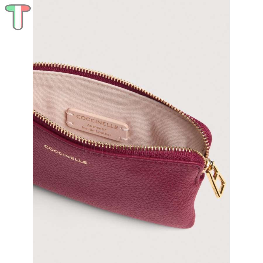 Collezione 2025 FW.  Produttore: Coccinelle.  Funzionalità: mini borsa.  pochette.  Materiale: vera pelle.  Colore: bordò.  Garanzia 2 anni.  Dimensioni: 18x10x1 cm.  Peso: 0.15 kg.